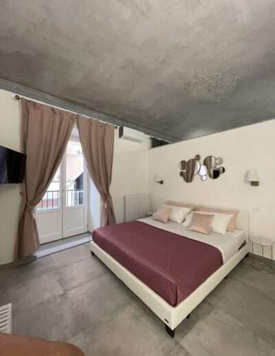 La suite Vittoria è un appartamento elegante, con finiture lussuose, di circa 85 mq; tre ambienti tutti dotati di balconi, due con vista su via Maqueda.